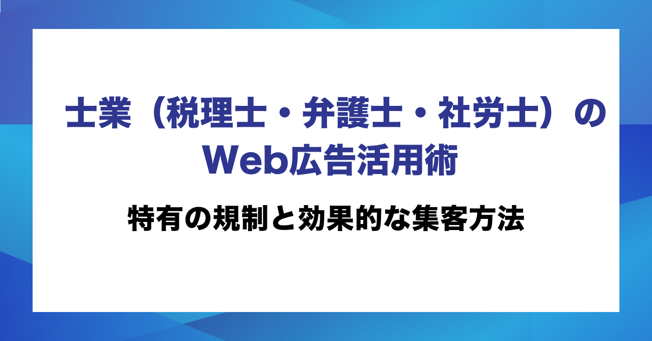 税理士・弁護士・社労士などの士業にとって、集客の主軸はこれまで紹介や口コミが中心でした。しかし今や、相談先を探す人の多くはまずインターネットで検索します。Web広告を正しく活用すれば、今まさに相談先を探している見込み客に能動的にアプローチでき、安定した新規集客につなげることが可能です。本記事では、士業特有の広告規制や効果的なチャネルの選び方、費用感、始め方まで、Web広告をはじめて試す方に向けてわかりやすく解説します。