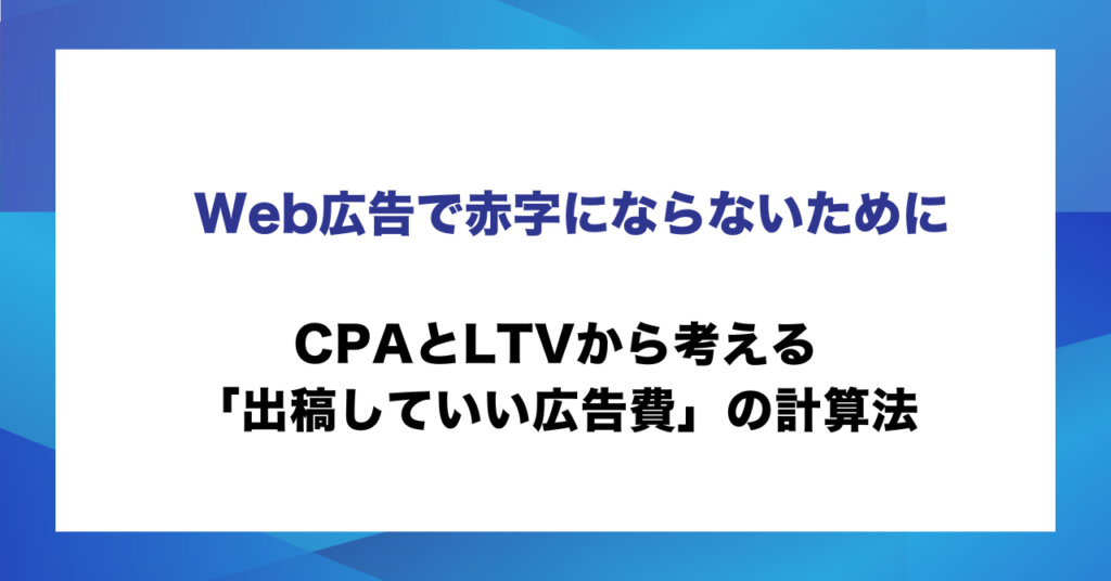 Web広告で赤字にならないために CPAとLTVから考える「出稿していい広告費」の計算法