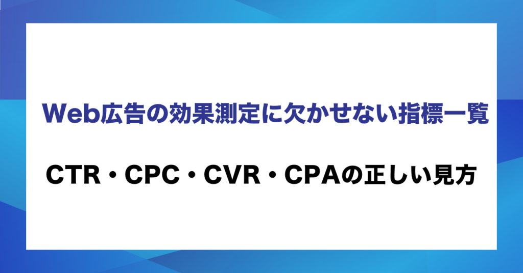 Web広告の効果測定に欠かせない指標一覧 CTR・CPC・CVR・CPAの正しい見方