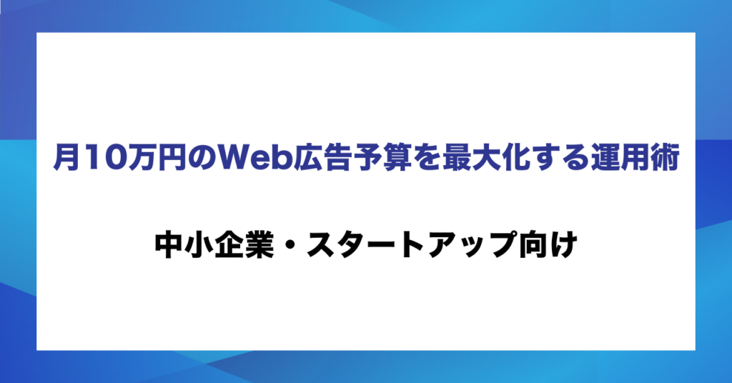 月10万円のWeb広告予算を最大化する運用術 中小企業・スタートアップ向け